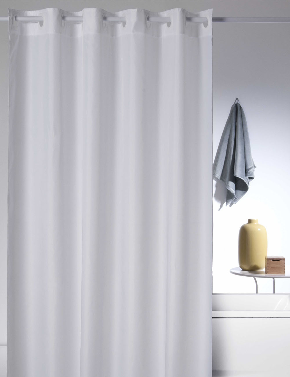 Lo que realmente la hace especial es su sistema mágico, un acabado que mejora la caída del tejido y evita que se adhiera al cuerpo durante la ducha, proporcionando una experiencia más cómoda y agradable. Además, está disponible en una amplia variedad de colores sólidos para que puedas integrarla fácilmente en cualquier estilo de baño: desde los más clásicos hasta los más contemporáneos.