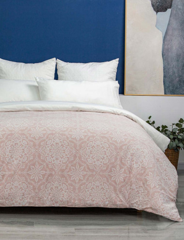 Funda nórdica de jacquard con tejido exterior 100% algodón de 280 gsm y tejido interior 100% algodón de 105 gsm. Ofrece un diseño elegante y clásico que se adapta perfectamente a cualquier decoración de dormitorio. Disponible en las siguientes medidas: